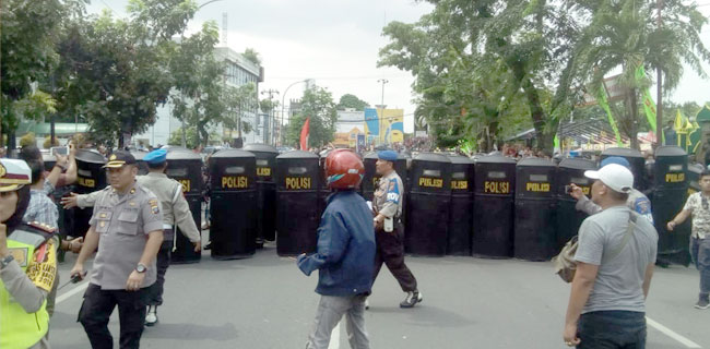Mereka sempat mendorong pagar kawat tersebut. Namun, langsung dapat diatasi oleh pihak kepolisian yang berjaga. (*)
