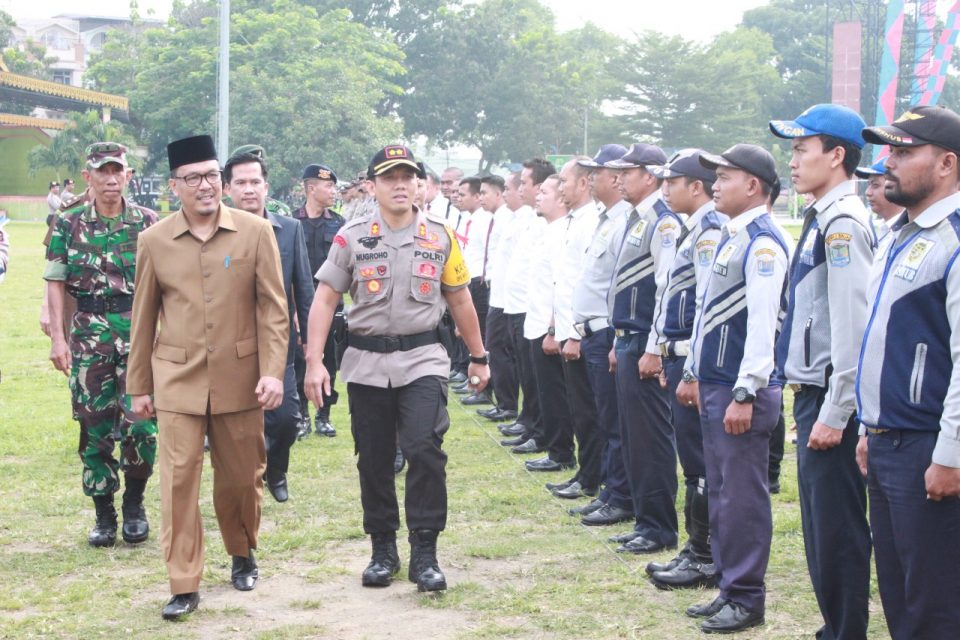 PROSUMUT – Plh Wali Kota Binjai Timbas Tarigan memimpin apel Operasi Patuh Toba 2019 di Lapangan Merdeka Kota Binjai, Kamis 29 Agustus 2019. Tahun lalu, korban tewas dalam kecelakaan lalu lintas menunjukkan peningkatan dibanding tahun 2017.