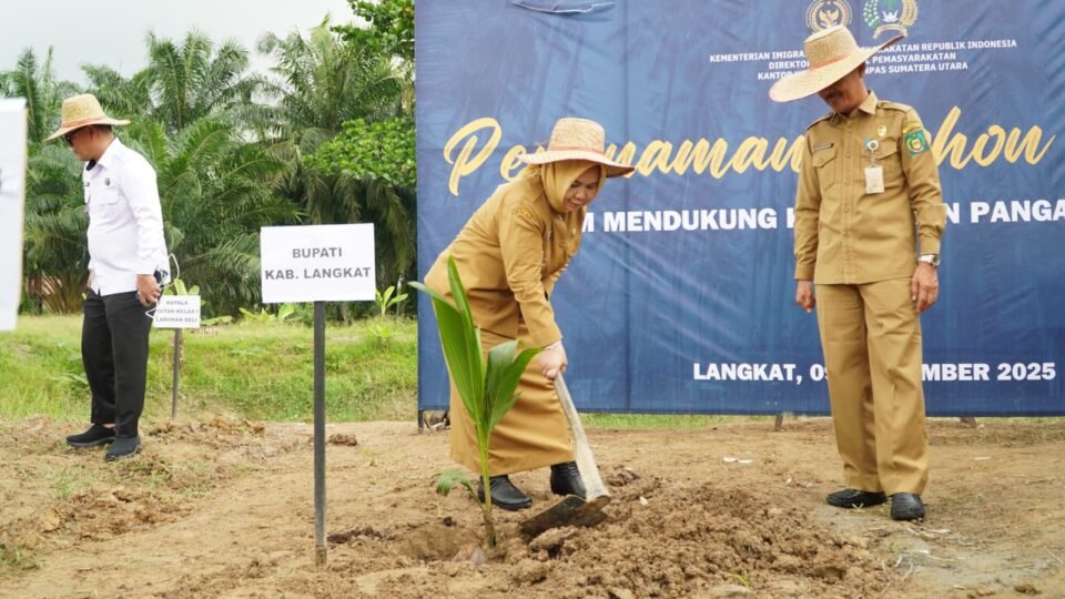 Demikian diungkapkan Wakil Bupati Langkat, Tiorita Br Surbakti, saat mengikuti zoom meeting bersama Kementerian Imigrasi dan Pemasyarakatan (Imapas) Republik Indonesia terkait penanaman pohon kelapa serentak di Lapas Narkotika Kelas II A Langkat, Selasa 9 September 2025.