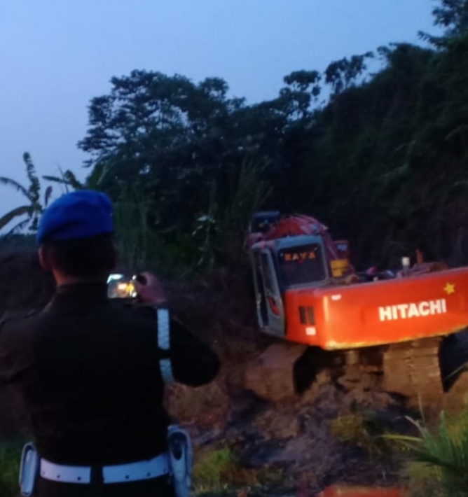 Kasat Reskrim AKP Wirhan Arif yang memimpin operasi penggerebekan. Sesampai di TKP, terlihat dua unit alat berat.