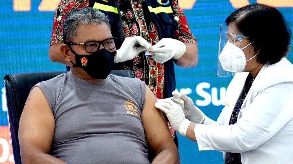 PROSUMUT – Kapolda Sumatera Utara (Sumut) Iren Pol Martuani Sormin menjadi orang kedua yang menerima vaksin Covid-19 (Sinovac) di provinsi ini, setelah Gubernur Sumut, H Edy Rahmayadi pada Kamis 14 Januari 2021 di Aula T Rizal Nurdin Rumah Dinas Gubernur, Jalan Sudirman Nomor 41 Medan.
