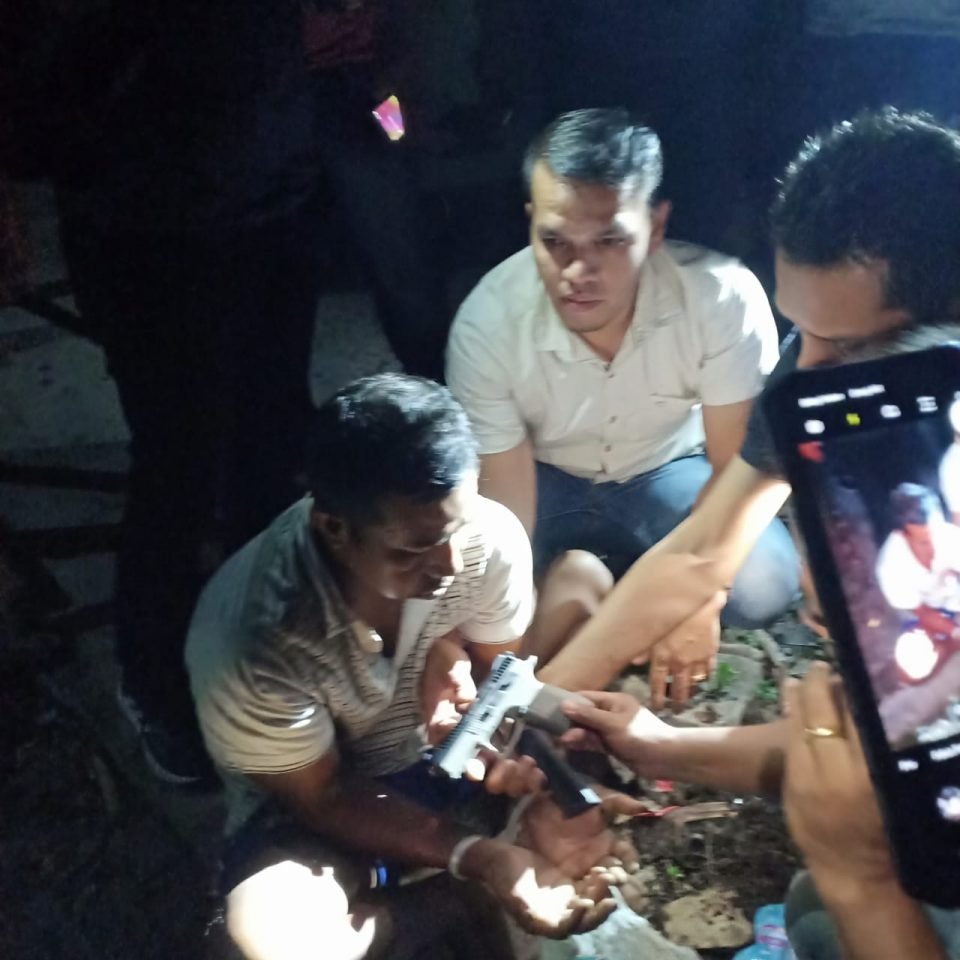 “Tersangka mengubur barang bukti senpi CZ P-07 Cal 22 RR buatan Republik Rusia di belakang rumahnya. Saat dilakukan pengembangan lagi, tersangka Marolop melawan petugas dengan coba melarikan diri,” sambungnya.