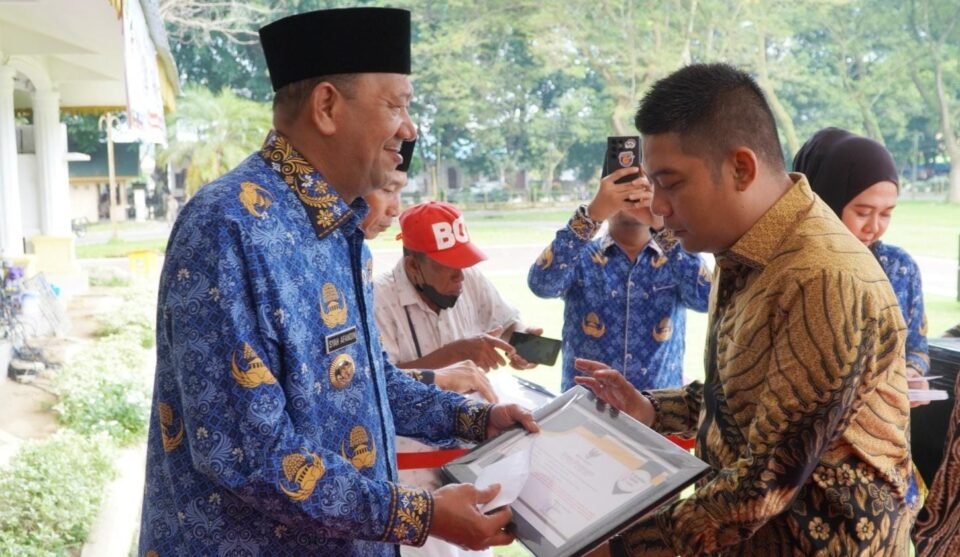 PROSUMUT – Bupati Langkat, Syah Afandin memimpin upacara peringatan Hari Sumpah Pemuda ke-97 Tahun 2025 di Alun-alun Tengku Amir Hamzah Stabat, Selasa 28 Oktober 2025.