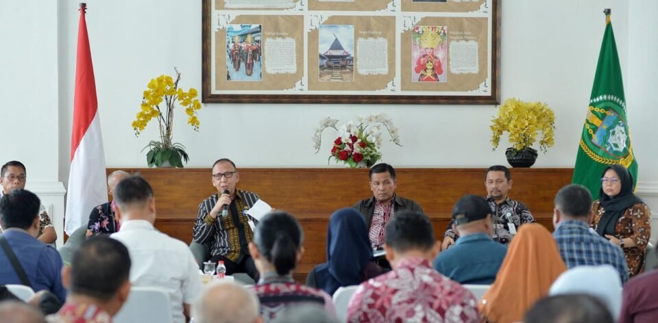 Asisten Perekonomian dan Pembangunan Setda Sumut, Effendy Pohan saat temu pers bersama OPD Pemprov Sumut terkait stabilitas harga komoditas pangan.
