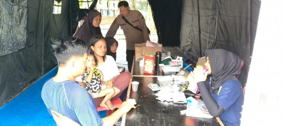 PROSUMUT – Pascabanjir yang melanda beberapa kawasan di Kabupaten Langkat beberapa waktu lalu, bahkan di beberapa titik atau desa masih terendam, Polres Langkat mengirimkan tim Dokkes untuk melayani kesehatan warga di Posko Pengungsian MAN 1 Langkat dan MTSN 1 Langkat Kecamatan Tanjung Pura.