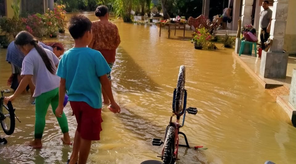 Jika ditotal, persisnya 496 unit bangunan yang terdiri dari rumah ibadah, sekolah, puskesmas, pasar hingga kantor Koramil terendam.