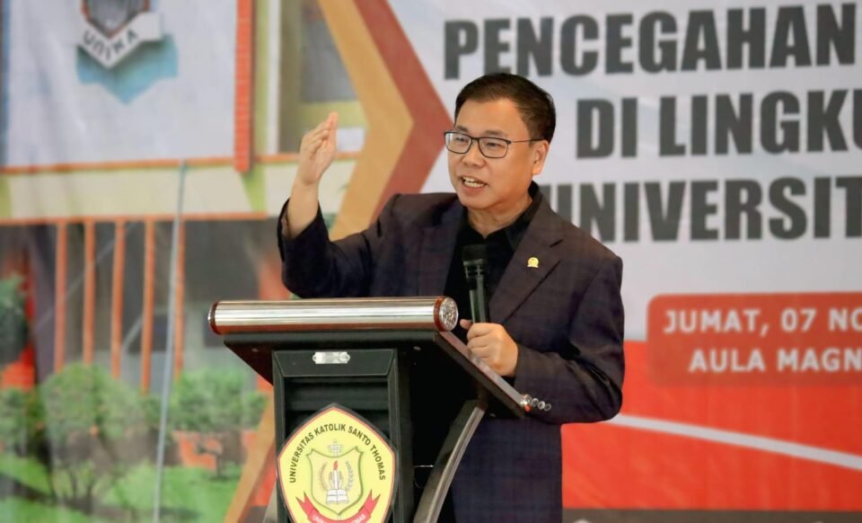 Hal itu disampaikannya saat menjadi keynote speaker dalam acara Sosialisasi Pencegahan dan Penanganan Kekerasan di Lingkungan Perguruan Tinggi (PPKPT) yang diselenggarakan Kemendiktisaintek berkolaborasi dengan Komisi X DPR RI di Kampus Universitas Katolik (UNIKA) Santo Thomas, Medan, Jumat 7 November 2025.
